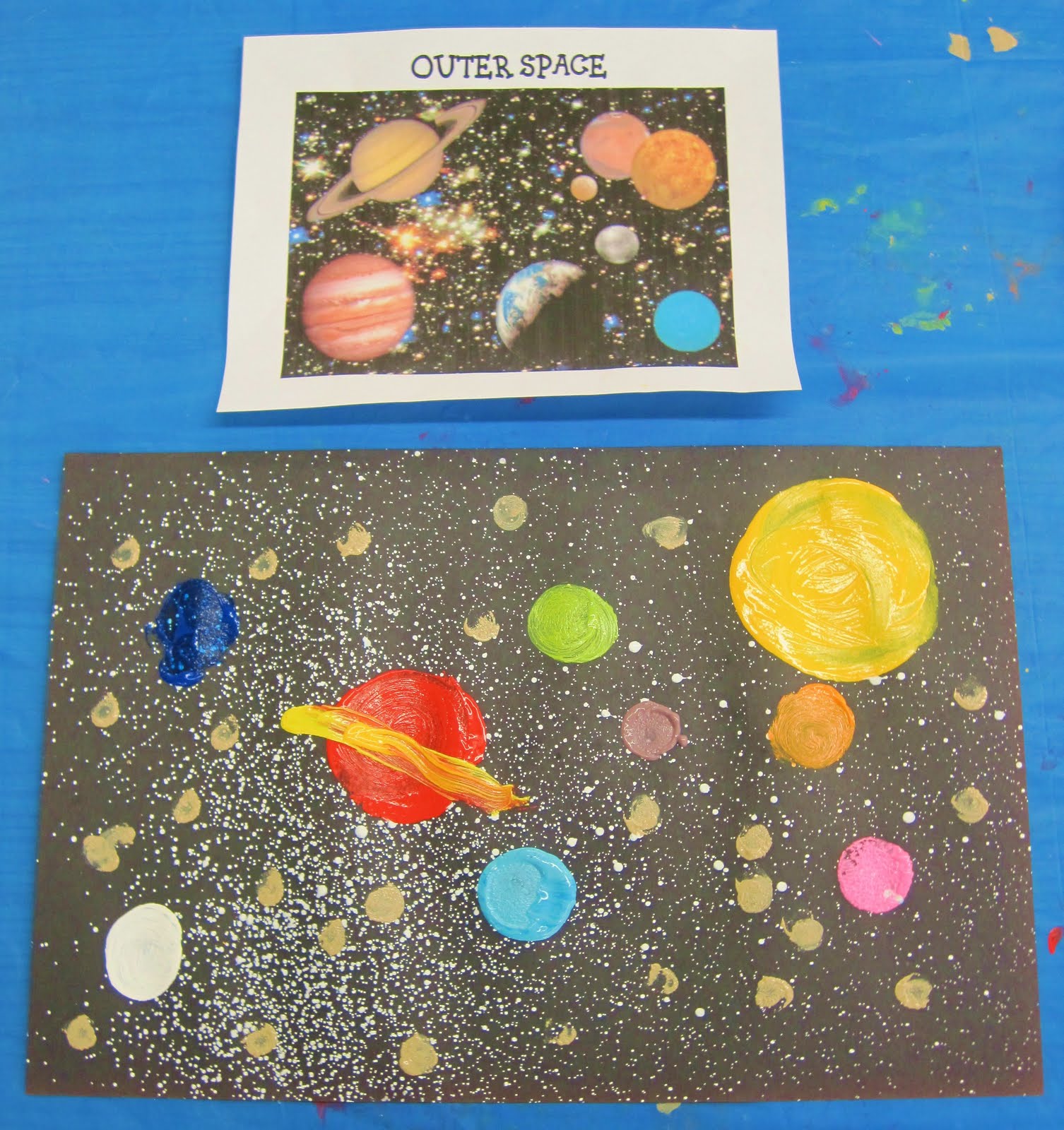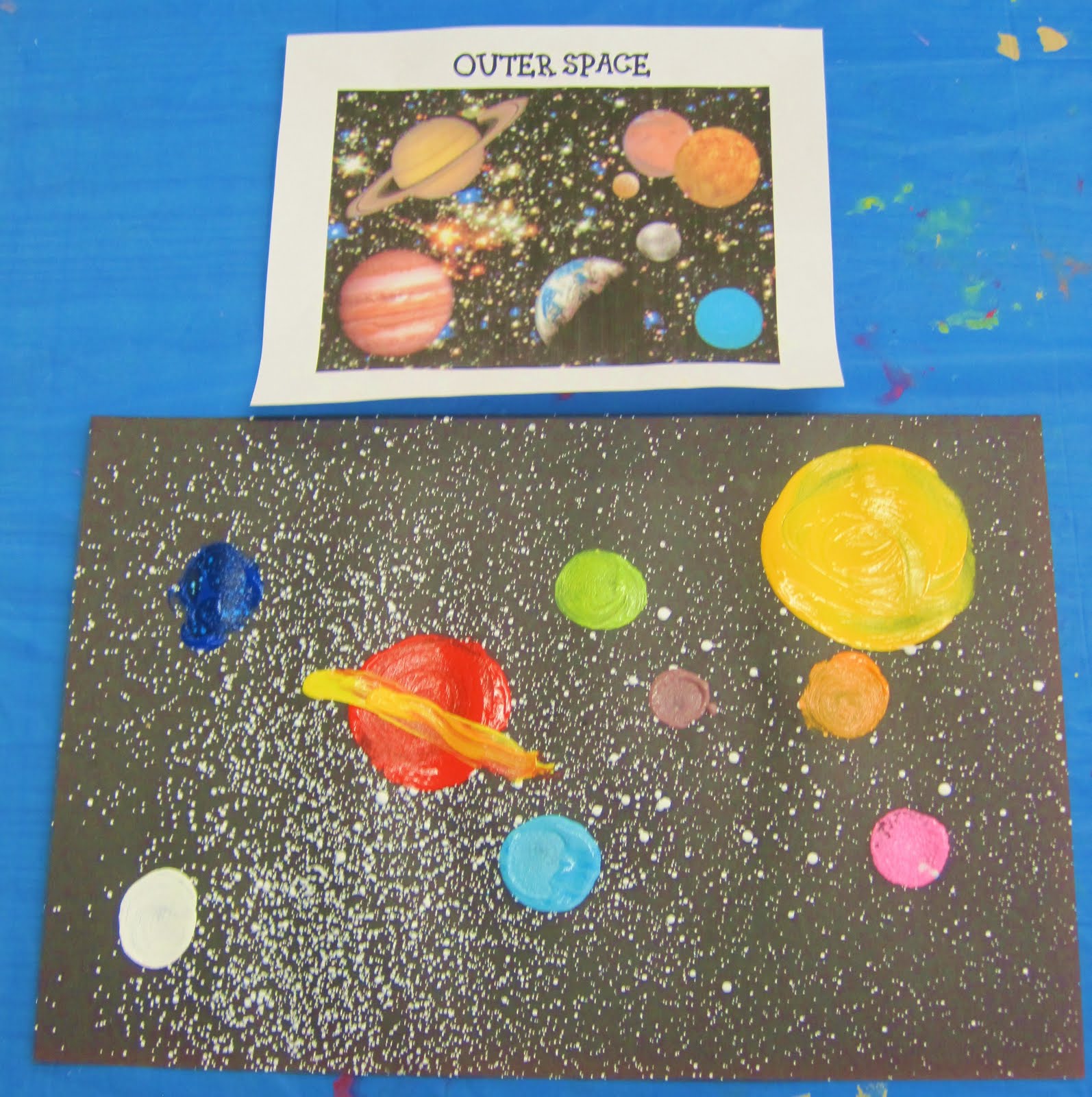 As the morning progressed, the teachers brought Outer Space Week back into focus by reading a solar system story and even viewing some real-life photographs from space! After seeing the photographs and discussing the different things that make up “outer space,” the children began creating their Outer Space Art Project.