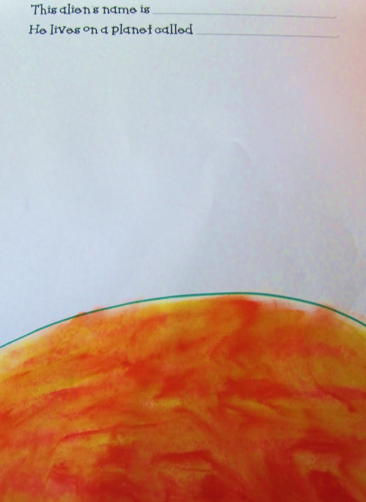 First, the children “colored” their planet with the Silky Sticks. They then blended the colors (with their fingers) into each other to create a beautiful silly planet – much like the ones we see in our solar system!