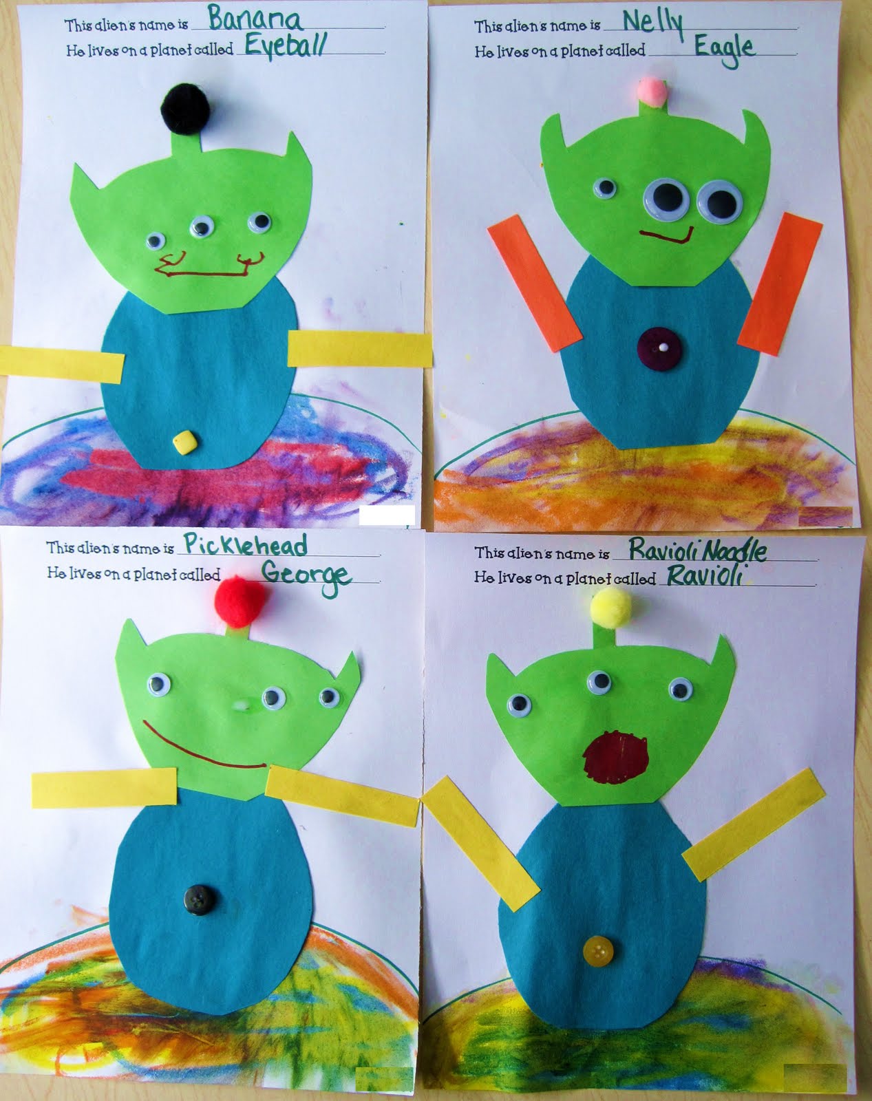 After the aliens had been assembled, the teachers informed the children that like people, all aliens need to have a name! Read below to see some of the silly alien and planet names the creative Park Prep children came up with!