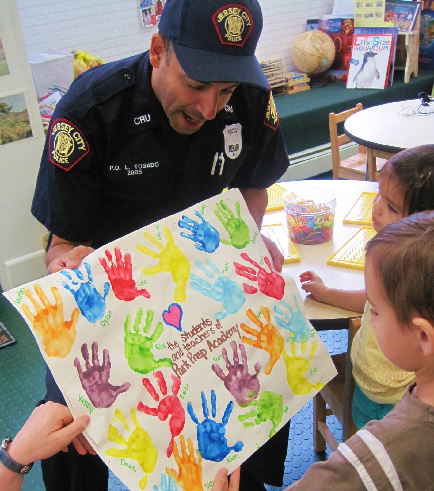 Thursday marked the return of Park Prep’s favorite Jersey City Policemean, Officer Lorenzo Tosado! This being Officer Tosado’s second visit to Park Prep Academy, the children spent their morning creating a very special Thank You card to present to him at the end of his visit.