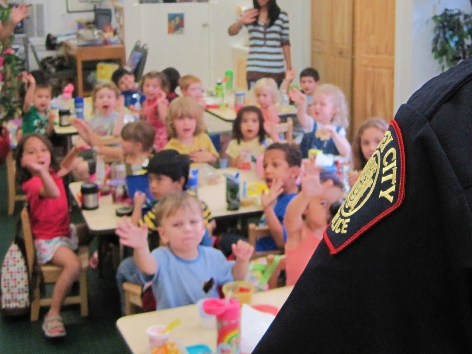 Officer Tosado arrived in his police van and led a very important discussion about police officers, the job they do and of course, STRANGER DANGER! He also made the children take a pledge to be safe, be smart, and have fun!