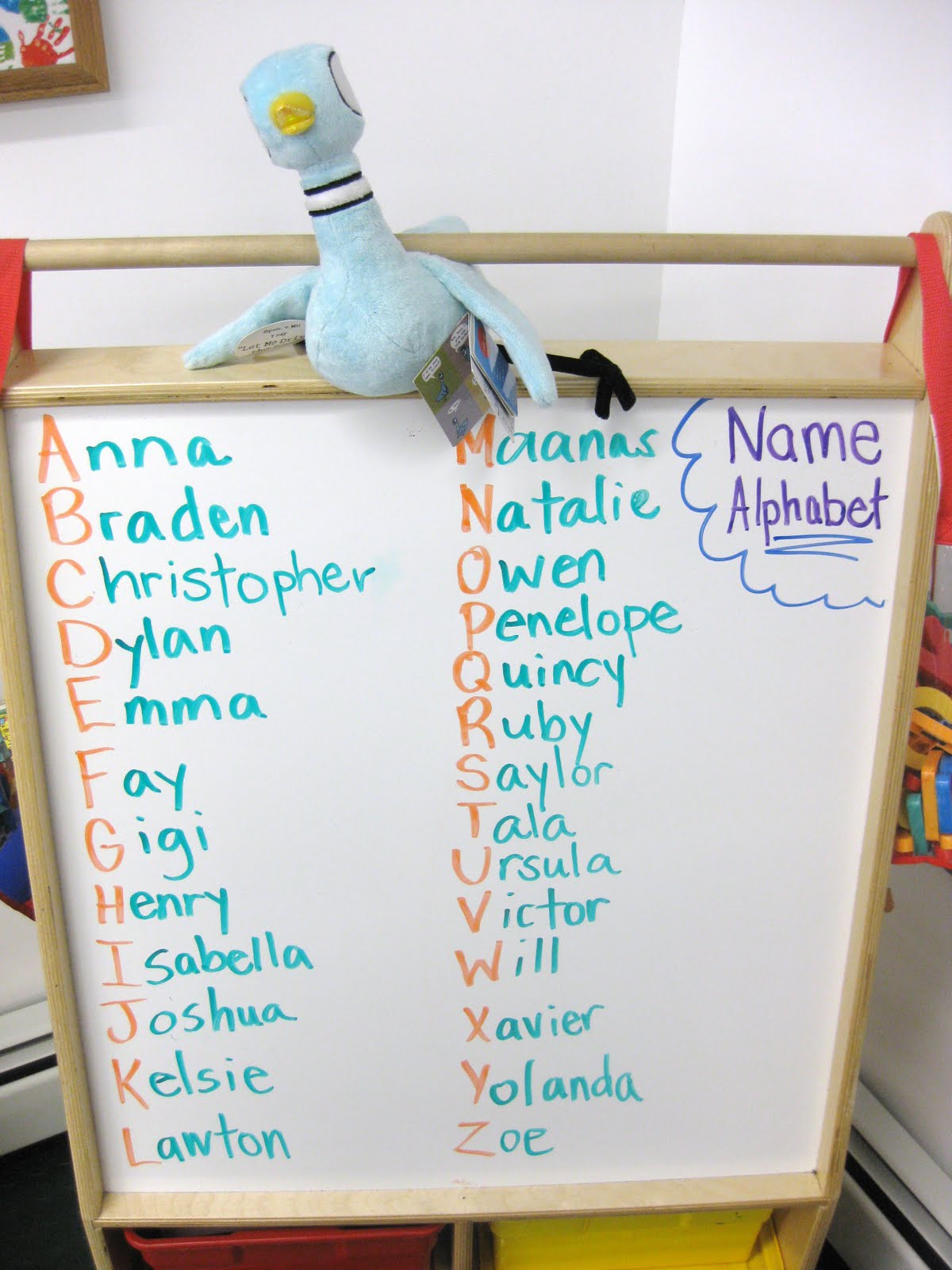 Friday wrapped up with a fun and familiar alphabet game – the name game! The students created the following list with a name for each letter.
